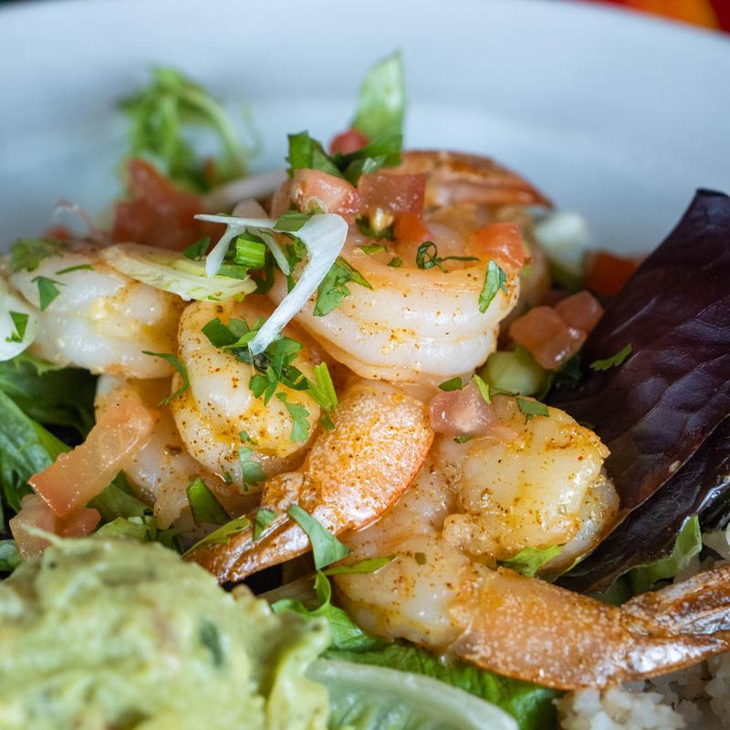 Chicken $18.66 | Sirloin Steak $19.70 | Shrimp $19.70 • Romaine mixed greens, lettuce, black beans, white wild rice, cilantro, crema, guacamole, tomato, and green onion.